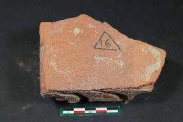 | Description / विवरण | Irregular shape decorated Brick Bat having rough surface. |