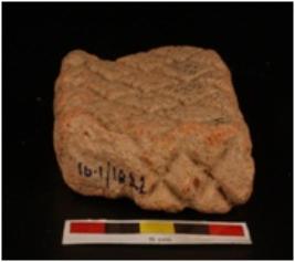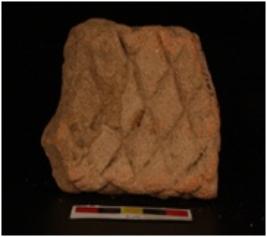 | Description / विवरण | Fragment of terracotta slab decorated, incised lines in geomatric design, rectangular shaped and red colour. |