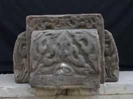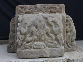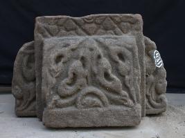 This sculpture is engraved on each side except top side. Design is singular and has remblance on each side.