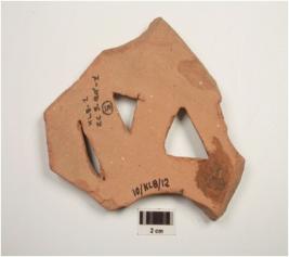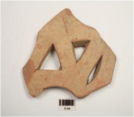 | Description / विवरण | Fragment of an architectural member, treated with buff slip on the exterior has lattice design on the surface. |
