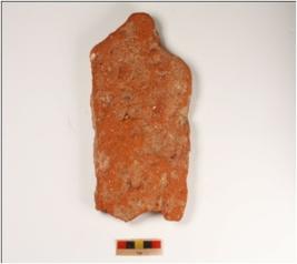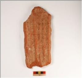 | Description / विवरण | Terracotta fragment of tile rough surface clay mixed with husk and red in colour. |