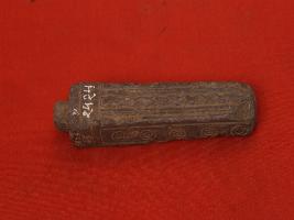 | Description / विवरण | It s a fragment of pillar made by sand stone. Colour is grey. It is broken and incise lines, circular design, zig - zag design on it. Rubbing on the surface and irregular marks on it. |