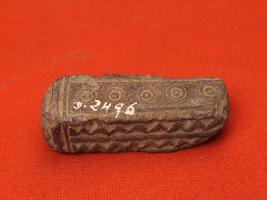 | Description / विवरण | It s a fragment of pillar made by sand stone. Colour is grey. Some part is broken and badly damaged. Incise lines on it. Rubbing on the surface and irregular marks on it. |