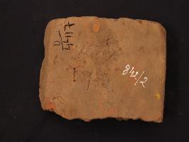| Description / विवरण | It is a fragment of tile made by high quality clay. Colour is ochred and not well fired. It is a Broken and irregular marks on it. Surface is rough and deposition of dust. |