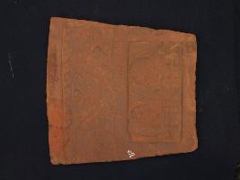 | Description / विवरण | It is a tile made by high quality clay. Colour is ochred and not well fired. Well made and a couple in the balcony on it. Surface is rough and deposition of dust. |