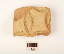 | Description / विवरण | Fragment of tile, incised with leaf pattern made of terracotta. |