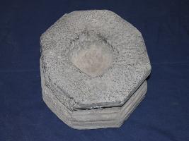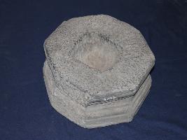 | Description / विवरण | This octagonal pedestal of sand stone with deep hole at the centre, now unfortunately damaged some features are clearly visible. Whole surface is rough with many scratches. |