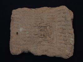 | Description / विवरण | It s a sun dried brick made by high quality clay. Colour is brownish and sun baked. Both sides are broken and depicting images on it. Surface is rough and deposition of dust. |