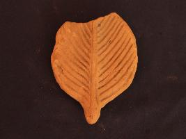 | Description / विवरण | It s a leaf made by high quality clay. Colour is ochred and not well fired. Incise lines on it. Surface is rough and deposition of dust. |