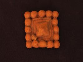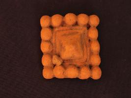 | Description / विवरण | It s a ornamentation made by high quality clay. Colour is ochred and not well fired. Dotted design on it. Surface is rough and deposition of dust. |
