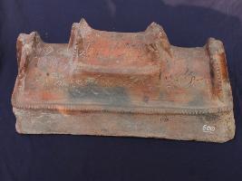 | Description / विवरण | It s a tomb made by high quality clay. Colour is red and well fired. Bottom portion is flat and Persian inscription. Surface is rough and deposition of dust. |