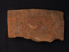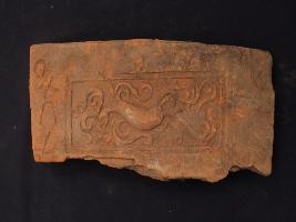 | Description / विवरण | It s a tile made by terracotta. It is well fired and colour is ochred. Well decorated and broken from one side. Rubbing on the surface and khurishti number on it. |