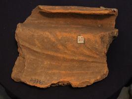 | Description / विवरण | It s a fragment of tile made by terracotta. It is well fired and colour is ochred. Well decorated and broken from all sides. Rubbing on the surface and deep lines on it. |