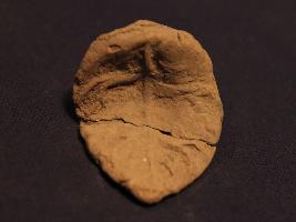 | Description / विवरण | It s a fragment of leaf made by terracotta. It is well fired and colour is ochred. Well decorated and broken from both sides. Rubbing on the surface and leaf design on it. |