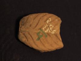 | Description / विवरण | It s a fragment of leaf made by terracotta. It is well fired and colour is ochred. Well decorated and broken from both sides. Rubbing on the surface and leaf design on it. |