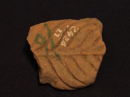 | Description / विवरण | It s a fragment of leaf made by terracotta. It is well fired and colour is ochred. Well decorated and broken from both sides. Rubbing on the surface and leaf design on it. |