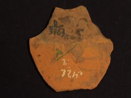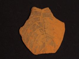 | Description / विवरण | It s a fragment of leaf made by terracotta. It is well fired and colour is ochred. Well decorated and bottom portion is lost. Rubbing on the surface and leaf design on it. |