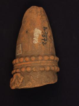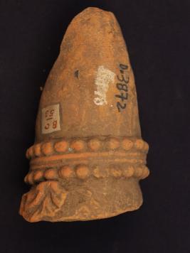 | Description / विवरण | It s a fragment of stupi made by terracotta. It is well fired and colour is ochred. Well decorated and dotted design on it. Rubbing on the surface. |