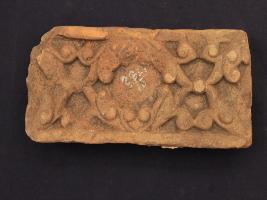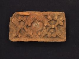 | Description / विवरण | It s a fragment of tile made by high quality clay. Colour is ochred and well fired. Both sides are broken and leaf design on it. Surface is rough and deposition of dust. |