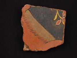 | Description / विवरण | It s a fragment of glazed tile made by high quality clay. It is well fired and colour is red, black. All sides are broken and flower design on it. Surface is rough and deposition of dust. |