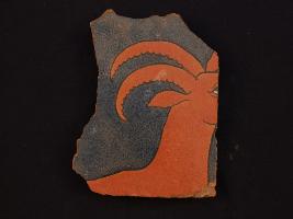 | Description / विवरण | It s a fragment of glazed tile made by high quality clay. It is well fired and colour is red, black. All sides are broken and dear figurine design on it. Surface is rough and deposition of dust. |