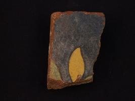 | Description / विवरण | It s a fragment of glazed tile made by high quality clay. It is well fired and colour is yellow, black. All sides are broken and leaf design on it. Surface is rough and deposition of dust. |