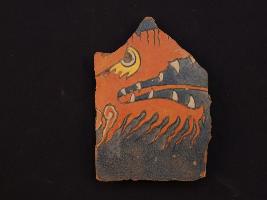 | Description / विवरण | It s a fragment of glazed tile made by high quality clay. It is well fired and colour is red, black. All sides are broken and flower design on it. Surface is rough and deposition of dust. |