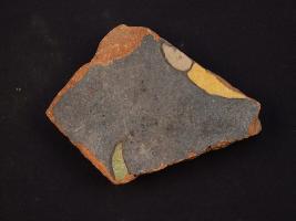 | Description / विवरण | It s a fragment of glazed tile made by high quality clay. It is well fired and colour is yellow, black. All sides are broken and leaf design on it. Surface is rough and deposition of dust. |
