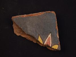 | Description / विवरण | It s a fragment of glazed tile made by high quality clay. It is well fired and colour is red, black. All sides are broken and flower design on it. Surface is rough and deposition of dust. |