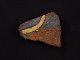 | Description / विवरण | It s a fragment of glazed tile made by high quality clay. It is well fired and colour is yellow, black. All sides are broken and leaf design on it. Surface is rough and deposition of dust. |