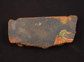 | Description / विवरण | It s a fragment of glazed tile made by high quality clay. It is well fired and colour is red, black. All sides are broken and flower design on it. Surface is rough and deposition of dust. |