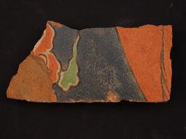 | Description / विवरण | It s a fragment of glazed tile made by terracotta with floral design on it. It is well fired and colours are red, blue, green, white and yellow. Broken from all sides. Rubbing on the surface. |