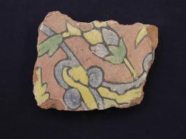 | Description / विवरण | It s a fragment of glazed tile made by terracotta with floral design on it. It is well fired and colours are red, blue, green and yellow. Broken from all sides. Rubbing on the surface. |
