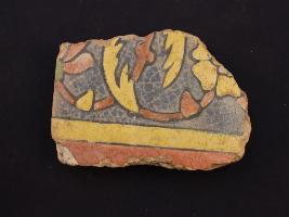 | Description / विवरण | It s a fragment of glazed tile made by terracotta with floral design on it. It is well fired and colours are red, blue, green and yellow. Broken from all sides. Rubbing on the surface. |