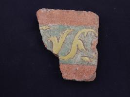 | Description / विवरण | It s a fragment of glazed tile made by terracotta with floral design on it. It is well fired and colours are red, blue, green and yellow. Broken from all sides. Rubbing on the surface. |
