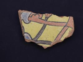 | Description / विवरण | It s a fragment of glazed tile made by terracotta with floral design on it. It is well fired and colours are red, blue and yellow. Broken from all sides. Rubbing on the surface. |
