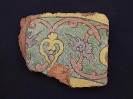 | Description / विवरण | It s a fragment of glazed tile made by terracotta with floral design on it. It is well fired and colours are red, blue, green and yellow. Broken from all sides. Rubbing on the surface. |