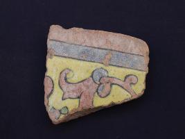 | Description / विवरण | It s a fragment of glazed tile made by terracotta with floral design on it. It is well fired and colours are red, blue and yellow. Broken from all sides. Rubbing on the surface. |