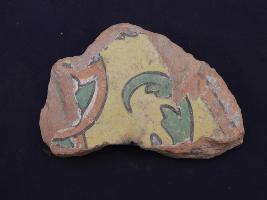 | Description / विवरण | It s a fragment of glazed tile made by terracotta with floral design on it. It is well fired and colours are red, blue, green and yellow. Broken from all sides. Rubbing on the surface. |