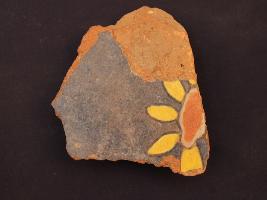| Description / विवरण | It s a fragment of glazed tile made by terracotta with floral design on it. It is well fired and colours are red, blue and yellow. Broken from all sides. Rubbing on the surface. |