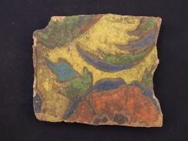 | Description / विवरण | It s a fragment of glazed tile made by terracotta with floral design on it. It is well fired and colours are red, blue, green and yellow. Broken from all sides. Rubbing on the surface. |