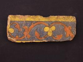 | Description / विवरण | It s a fragment of glazed tile made by terracotta with floral design on it. It is well fired and colours are red, blue and yellow. Broken from all sides. Rubbing on the surface. |