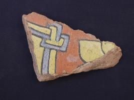 | Description / विवरण | It s a fragment of glazed tile made by terracotta with floral design on it. It is well fired and colours are red, blue, green and yellow. Broken from all sides. Rubbing on the surface. |
