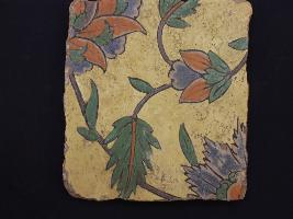 | Description / विवरण | It s a fragment of glazed tile made by terracotta with floral design on it. It is well fired and colours are red, blue, green and yellow. Broken from all sides. Rubbing on the surface. |