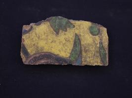 | Description / विवरण | It s a fragment of glazed tile made by terracotta with floral design on it. It is well fired and colours are blue, green and yellow. Broken from all sides. Rubbing on the surface. |