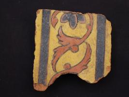 | Description / विवरण | It s a fragment of glazed tile made by terracotta with floral design on it. It is well fired and colours are red, blue and yellow. Broken from all sides. Rubbing on the surface. |