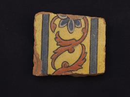| Description / विवरण | It s a fragment of glazed tile made by terracotta with floral design on it. It is well fired and colours are red, blue and yellow. Broken from all sides. Rubbing on the surface. |
