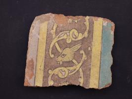 | Description / विवरण | It s a fragment of glazed tile made by terracotta with floral design on it. It is well fired and colours are red, blue and yellow. Broken from all sides. Rubbing on the surface. |