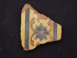 | Description / विवरण | It s a fragment of glazed tile made by terracotta with floral design on it. It is well fired and colours are red, blue, green and yellow. Broken from all sides. Rubbing on the surface. |