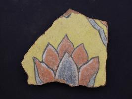 | Description / विवरण | It s a fragment of glazed tile made by terracotta with floral design on it. It is well fired and colours are red, blue and yellow. Broken from all sides. Rubbing on the surface. |